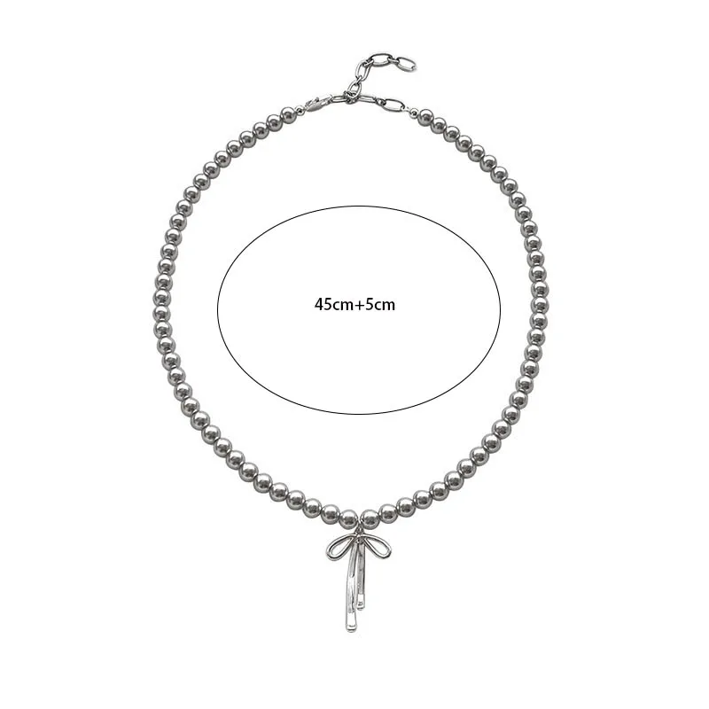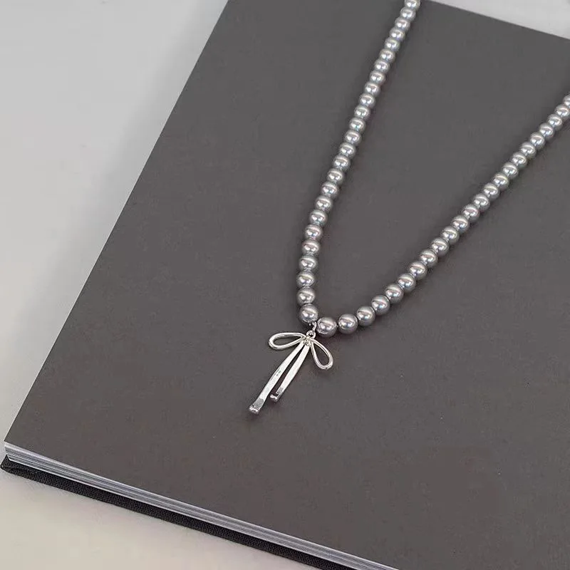 Fashionable Choker with Pendant Graceful Bowknot Pendant Choker Necklace with Gray Pearls Neck Jewelry Accessories